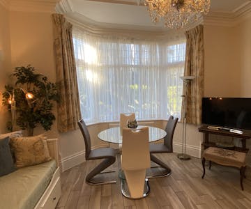 This easy-access ground floor Suite has cosy Victorian charm and partial sea view over the gardens. *Being mostly porcelain floors, this suite is suitable for well-behaved dog guests (who preferably stay outside of the carpeted bedroom). Continental Breakfast included.
